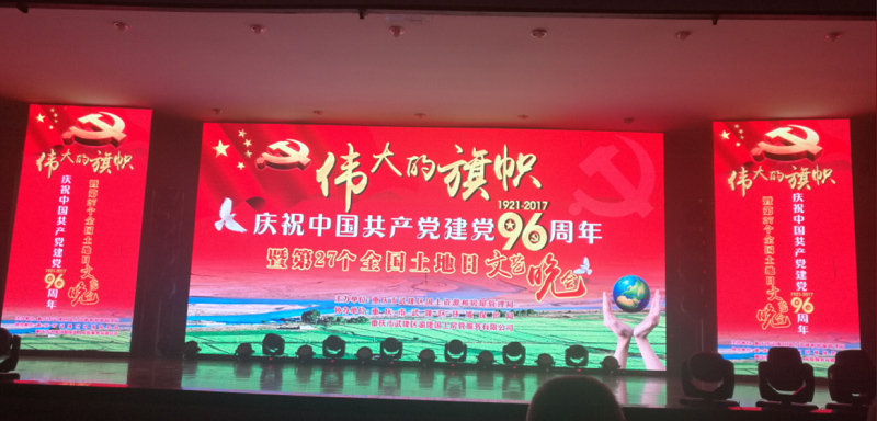 6月29日在武隆区实验小学学术报告厅,武隆区环保局支部与国土局党总支部联合开展了共祝中国共产党建党96周年文艺晚会。晚会主题为宣传党的光辉历程、伟大的成就和优良的传统以及在深入开展“两学一做”学习教育和扶贫攻坚工作中涌现出的优秀共产党员,唱响共产党好、改革开放好的主旋律,又体现了环保局“保护环境,服务发展”等理念。